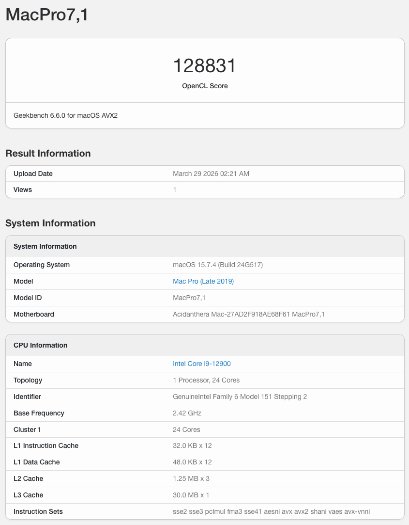 해킨토시 OpenCL Score 128831