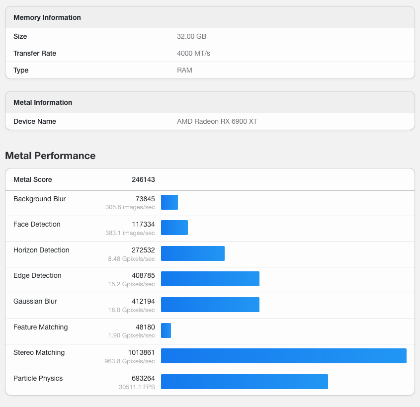 | Graphics | AMD Radeon RX 6900 XT 16GB | macOS 네이티브 가속 지원 최상위 모델 |